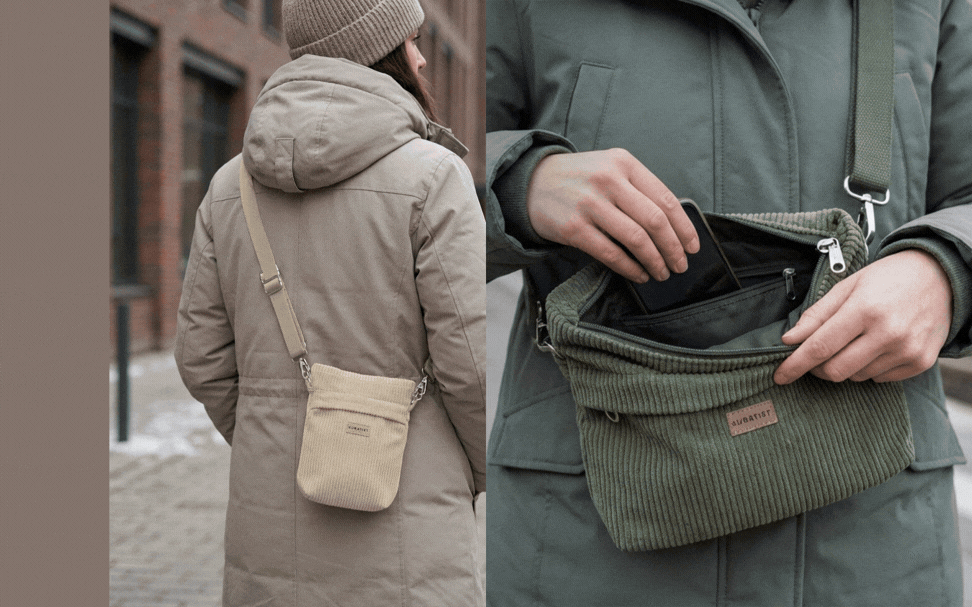 Handmade, sustainable phone cases, bags and tech accessories made from 100% cotton. Thoughtfully designed and ethically manufactured, with animal-free materials - perfect for your everyday adventures.