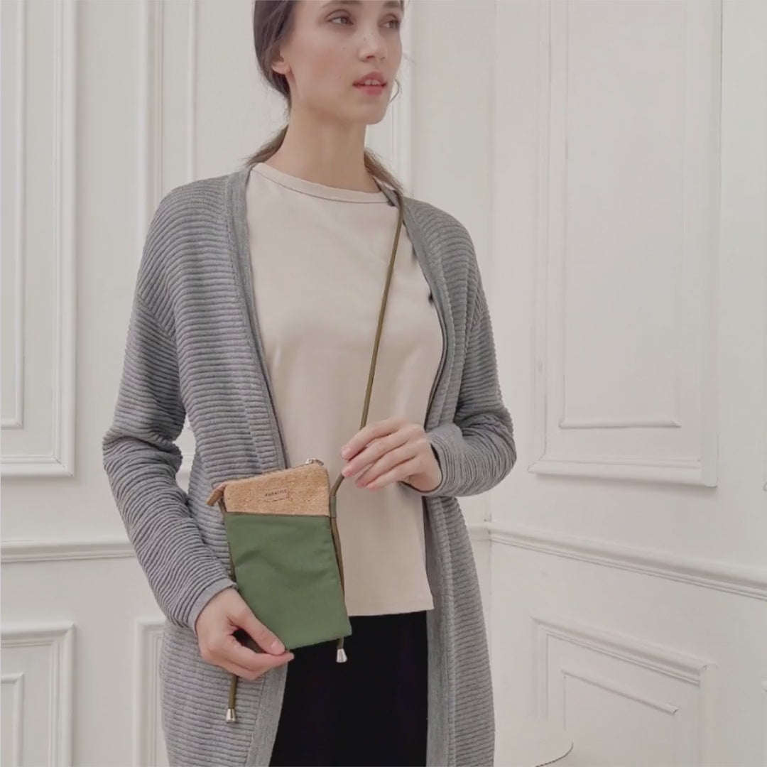 Introducing the 'FREYA' mobile phone shoulder bag and wallet from Kuratist. Crafted from 100% cotton and natural cork, it offers protection and style. With three compartments and two zippers, your valuables stay safe and organized. Wear it as a shoulder bag or around your neck with the adjustable cord. The front pocket is perfect for accessories, while the hidden wallet stores cards and cash securely. Upgrade your on-the-go essentials with 'FREYA'.