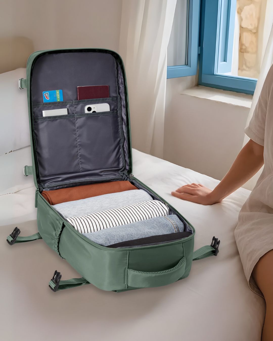 This thoughtfully designed cabin backpack simplifies your travels. With compact dimensions (40 × 28 × 17 cm), it fits carry-on requirements for most airlines—ideal for weekend getaways, city breaks, or short beach holidays without paying for checked luggage.