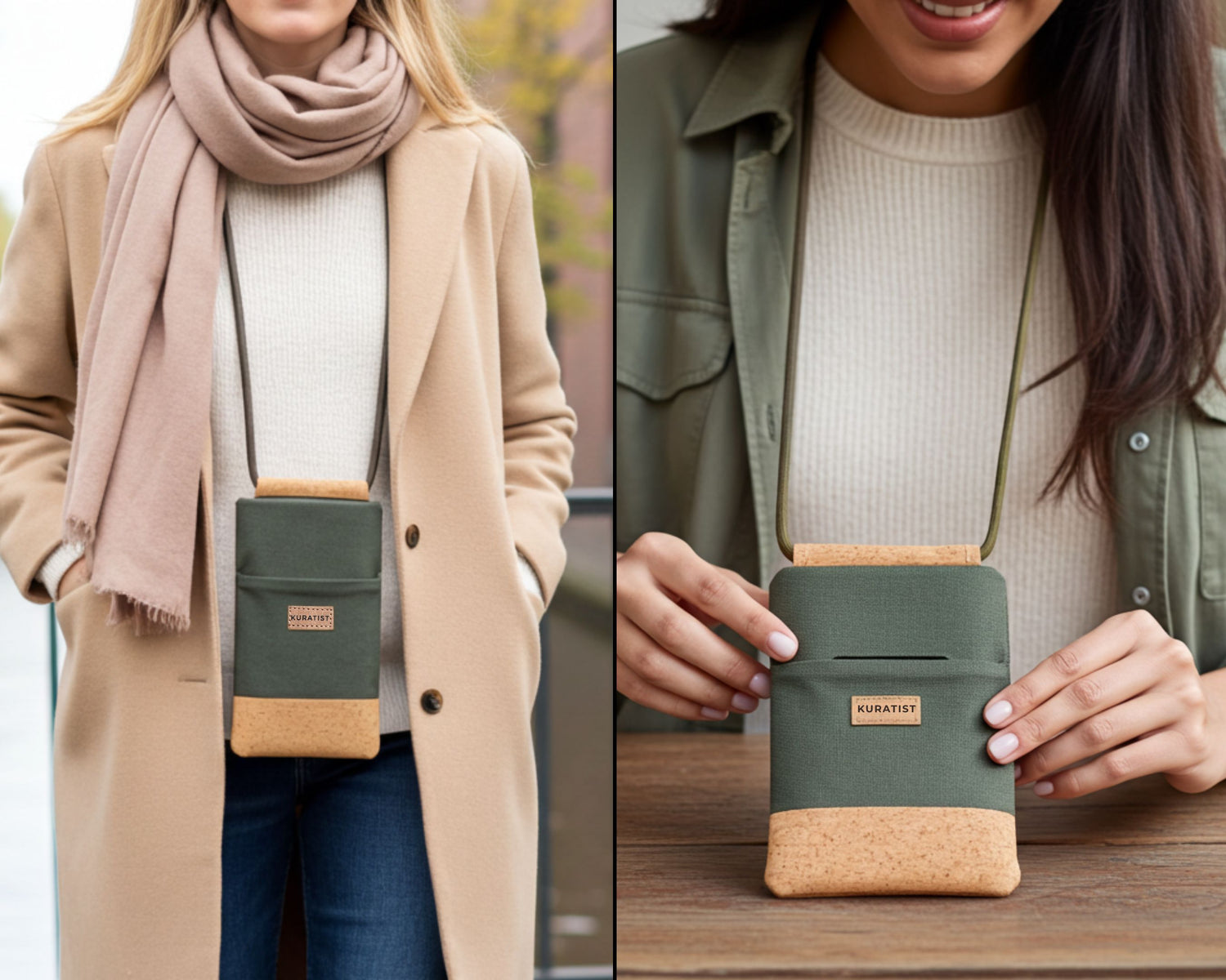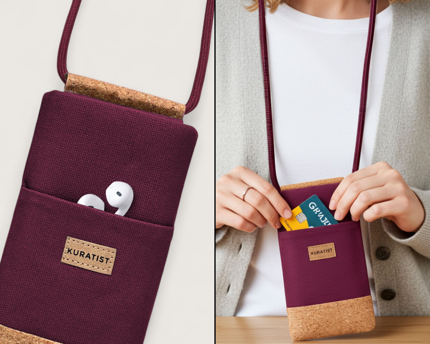 The NELA crossbody phone sleeve is more than just protection. With a padded cotton sleeve, cork edges, and an anti-theft flap, you can keep everything readily accessible and securely stored. The convenient front pocket allows for easy and quick access to your belongings. The comfortable cord enables worry-free, hands-free carrying.