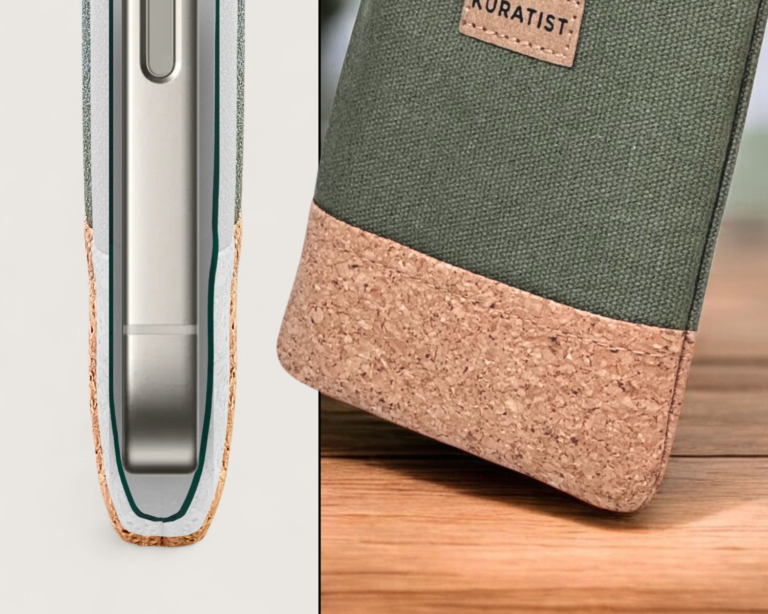 Ultra-lightweight and only 10mm thin, this case offers four layers of protection: water-repellent nylon lining to keep out the rain, shock-absorbing foam, durable cotton canvas to protect against dust, and a cork bottom to absorb shocks. Stylish, slim and functional - ideal protection for your phone.