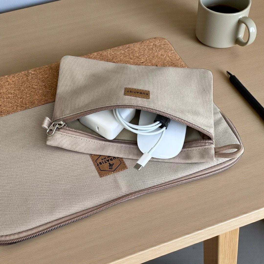 Hält Ladegerät, Maus und Kabel übersichtlich zusammen – kein Suchen mehr in großen Taschen.